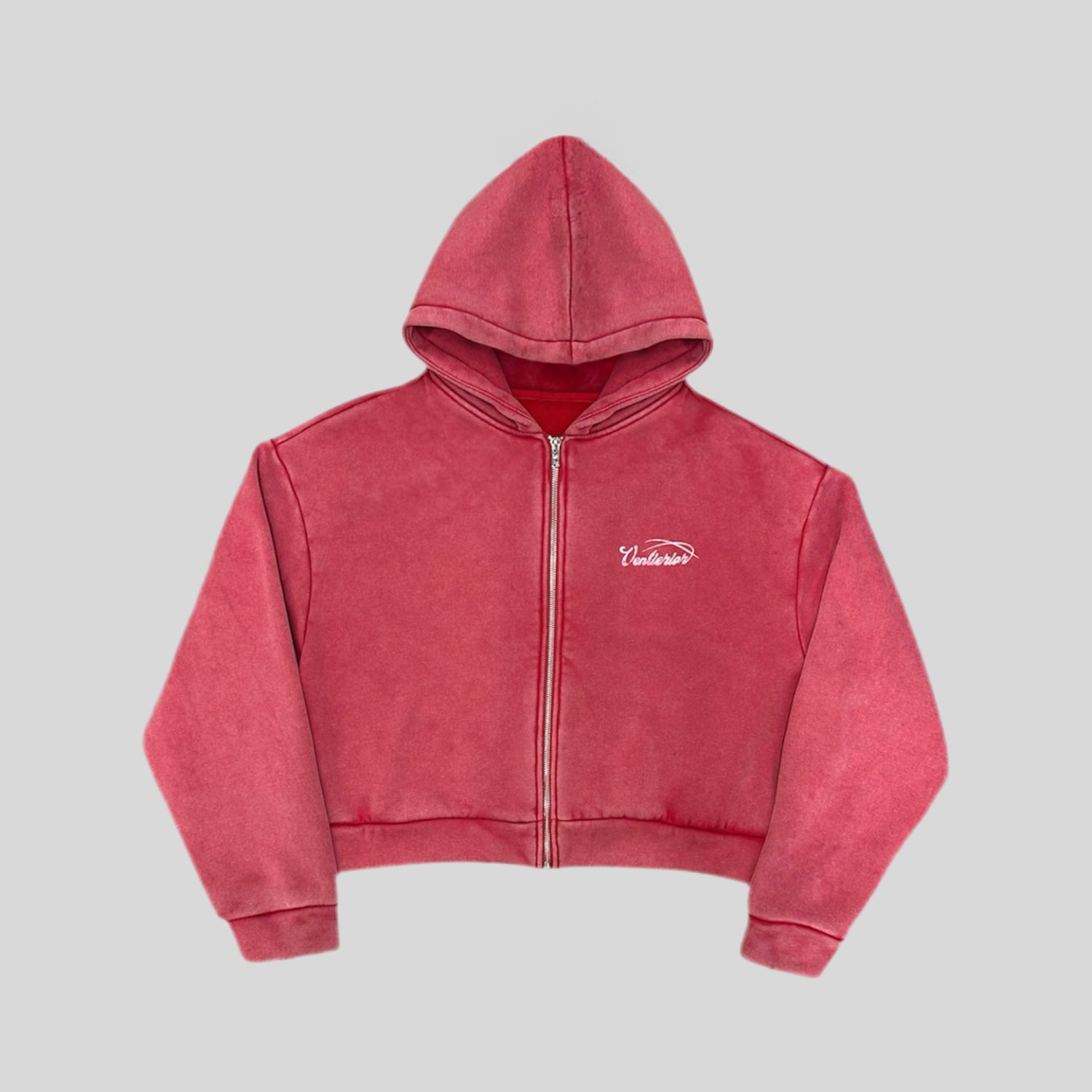 Cropped hoodie with a relaxed, comfy fit. For men, we recommend sizing up at least once for a less cropped fit or twice for a more regular fit. This pocketless design offers a clean, minimalist look.